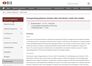 The Group of Central Bank Governors and Heads of Supervision (GHOS), the oversight body of the Basel Committee on Banking Supervision, has agreed to prioritise further analysis on the financial risk implications of extreme weather events and tasked the Basel Committee with analysing the impact of such events on financial risks. However, a major obstacle for banks is the absence of generally accepted industry models of credit risk adjusted for physical risk factors. This raises the question of whether banks should build their own internal models to account for climate-related adjustments to the internal probability of default and loss-given-default.